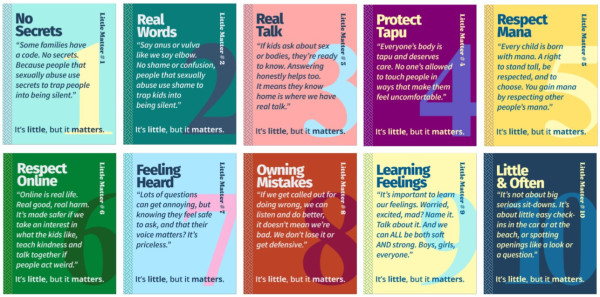Little Matters are the small, everyday codes, tikanga, and habits that help keep tamariki safer today and raise a future free from child sexual abuse.