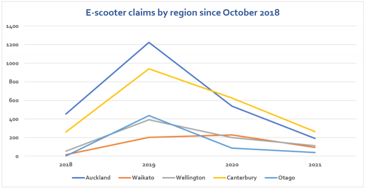 Because of this targeting, our injury data resulted in 75% of e-scooter-related claims being in Auckland, Wellington and Canterbury.