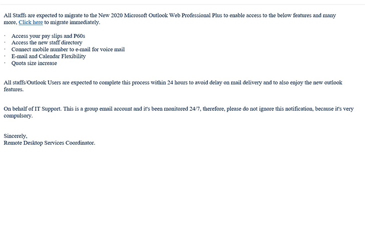 If you get an email like this, do not click on any links or attachments.